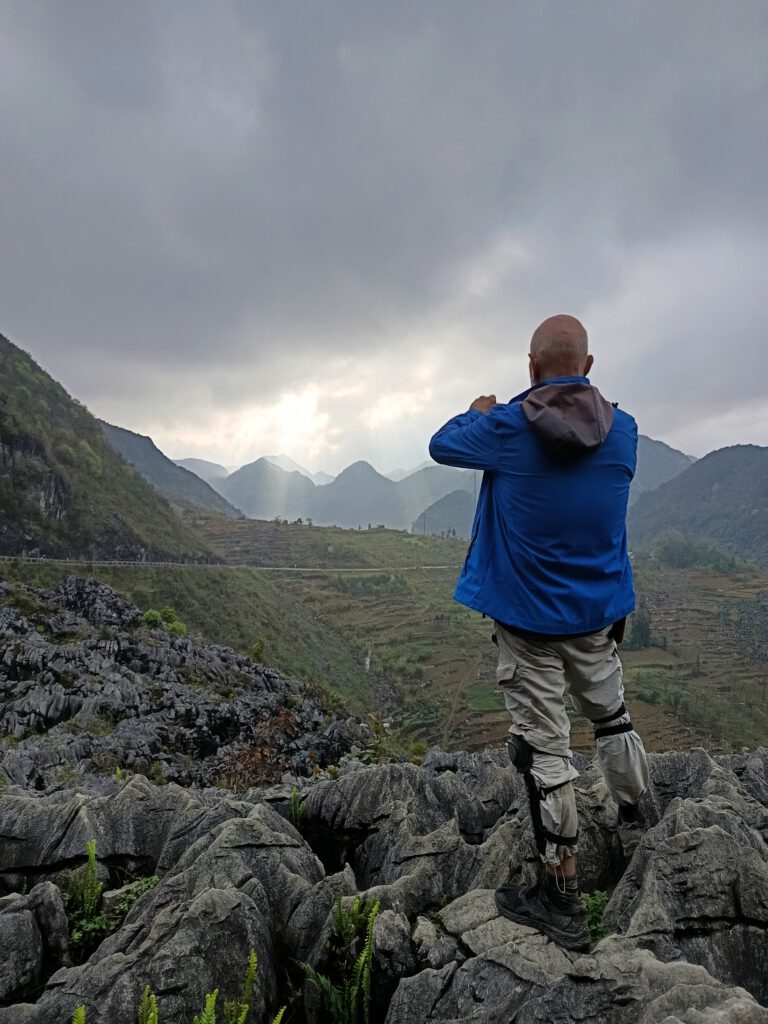 Die Ha Giang Loop selbst ist eine rund 400 Kilometer lange Rundstrecke im äußersten Norden Vietnams, nahe der chinesischen Grenze. Was auf der Karte überschaubar wirkt, entpuppt sich schnell als echte Herausforderung: enge, kurvige Bergstraßen, steile Anstiege, unvorhersehbare Straßenverhältnisse und immer wieder Wetterwechsel. Genau das macht den Reiz aus. Man fährt nicht einfach nur eine Strecke ab – man erlebt sie mit jeder Kurve neu.