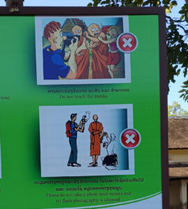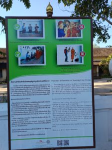 Eine Anleitung für Touristen, wie man sich bei der Mönchsfütterung (auch als Almosengang der Mönchen oder Tak Bat bekannt) zu verhalten hat. Gut gemeint, sehr genau – und irgendwie typisch für einen Ort, an dem selbst Rituale erklärungsbedürftig werden, wenn sie auf Reisende treffen.