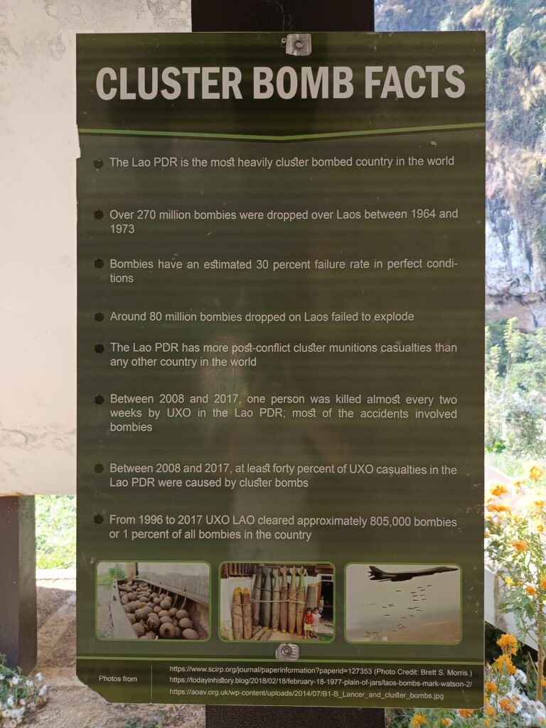 Nicht alles in Laos ist leicht oder still. In der Nähe von Nong Khiao erinnert das Museum Ban Mada an eine Zeit, in der Menschen über Jahre hinweg in Höhlen lebten, um sich vor Bombardierungen zu schützen. Laos ist bis heute das meistbombardierte Land der Welt, und noch immer liegen unzählige Blindgänger im Boden. Dieser Teil der Geschichte gehört ebenso dazu wie die ruhigen Landschaften.