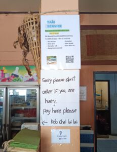Ein Schild brachte die Haltung des Landes dann endgültig auf den Punkt: Wenn man keine Zeit zum Bestellen hat, soll man es bitte gleich lassen. Nicht unfreundlich gemeint, eher konsequent. Entschleunigung als Grundprinzip.